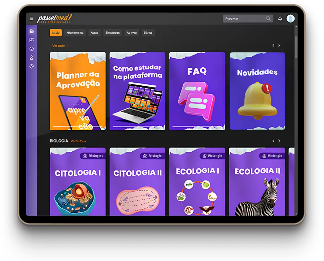 A Passei! é uma das plataformas mais organizadas do mercado. Ela reúne, em um único ambiente, seu cronograma de estudos, materiais complementares, bônus exclusivos, simulados e aulas, facilitando seu aprendizado de forma prática e eficiente.