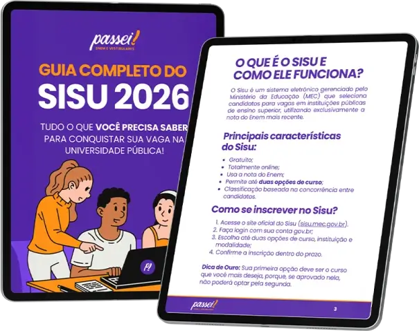 Baixe gratuitamente o e-book que mostra como usar sua nota do ENEM com estratégia, evitar erros na inscrição e aumentar suas chances reais de aprovação no SISU.